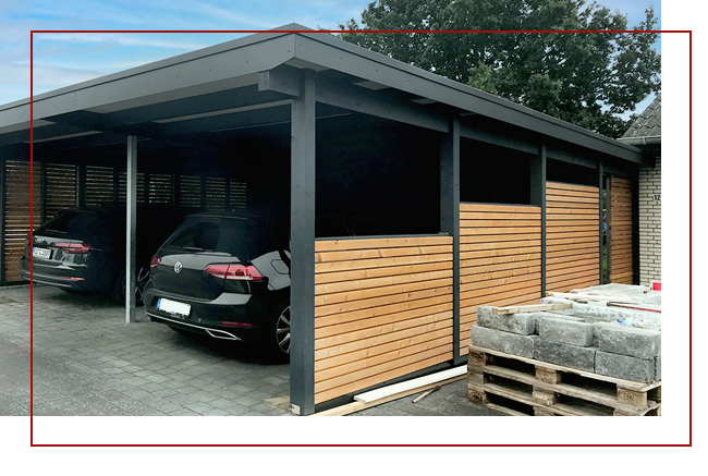 Innovative Carports für Ihr Zuhause. Neben dem Schutz Ihres Fahrzeugs bieten unsere Carports zusätzlichen Stauraum und die Möglichkeit, mit Solarpaneelen nachhaltige Energie zu gewinnen. Eine smarte Lösung, die Ästhetik, Schutz und Energieeffizienz vereint.